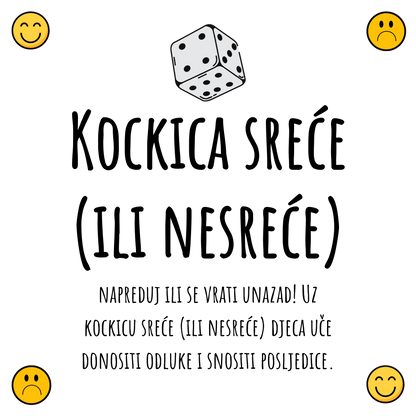 5. KOCKICA SREĆE (ILI NESREĆE) – napreduj ili se vrati unazad! Djeca uče donositi odluke i snositi posljedice.